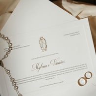 Por meio de um processo de curadoria dirigida, definimos o conjunto que guiará o seu convite. Paleta de cores, fontes, monograma e ilustrações são escolhidas dentro do nosso catálogo autoral.